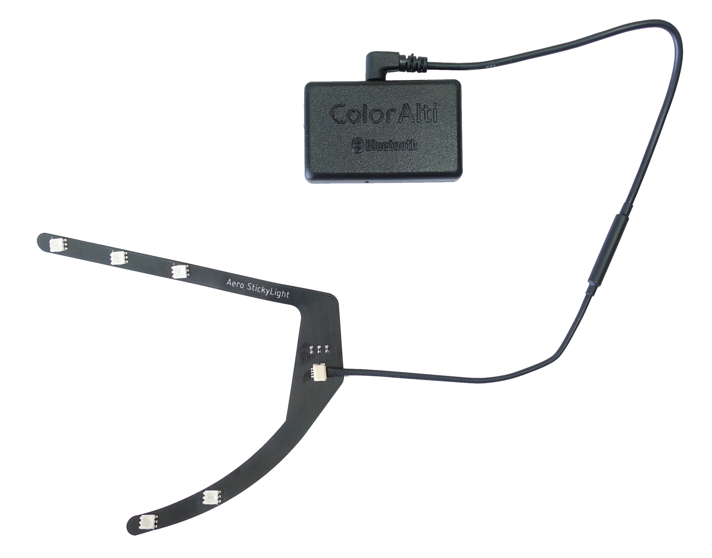 ColorAlti is a barometric-pressure-based, peripheral vision skydiving altimeter and vertical descent speed indicator that utilizes color to indicate a person's current altitude or vertical descent speed during a skydive. It consists of: 1) a control unit similar in shape to an audible altimeter that can be accessed via an iOS or Android app and Bluetooth® wireless technology and 2) a connecting light that can take various forms including gooseneck lights for open-face helmets or adhesive flexible circuit board lights for full-face helmets or goggles (StickyLights), but which always consists of a number of RGB LEDs placed somewhere in the skydiver's peripheral vision. The effect of multiplying the number of LEDs on a ColorAlti light is to enhance visibility, and not to increase the number of colors used; each LED on a ColorAlti light displays the same color during the entire skydive.
